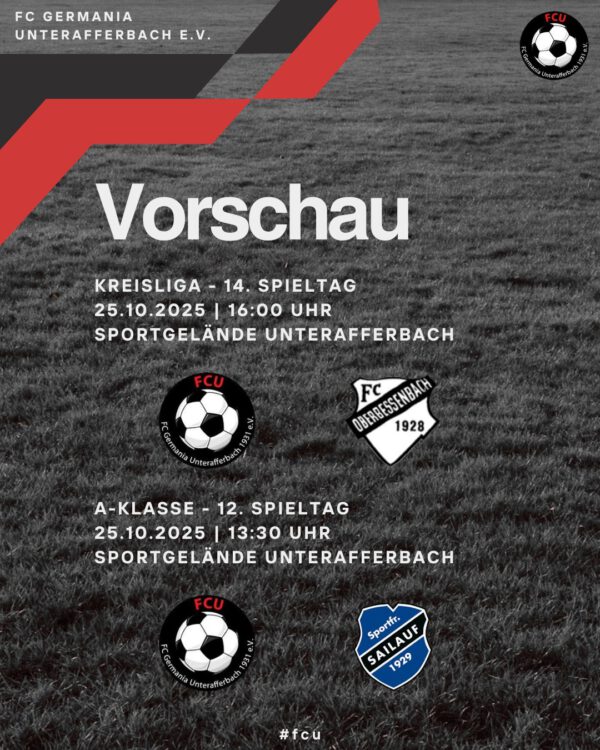Am Kerb-Samstag, 25. Oktober 2025, treten unsere beiden Herren-Teams zu kniffligen Heim-Duellen gegen die Sportfreunde Sailauf II und den FC Oberbessenbach I an!
