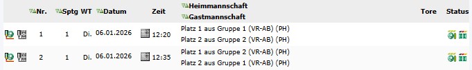 Die Vorrundenspiele beginnen um 09:30 Uhr, anschließend finden gleich die Halbfinals (ab ca. 12:20 Uhr) und die Finalspiele (ab ca. 13:00 Uhr) statt.