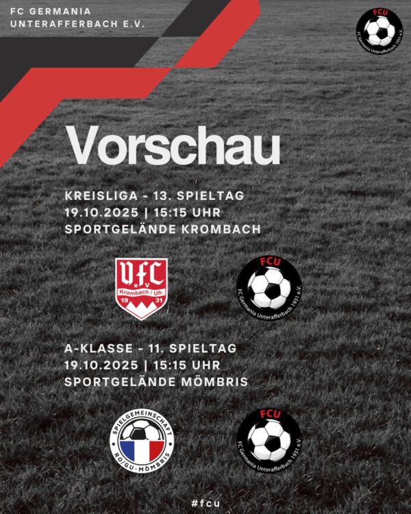 Am heutigen Sonntag, 19. Oktober 2025, müssen unsere beiden Herrenteams zeitgleich auswärts im Kahlgrund antreten.